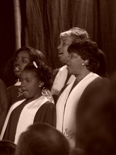 The night opened with the Maryland Jazz Band of Cologne on the front steps of town hall. The music was fabulous and the singer had a wonderful, Louis Armstrong-style vocals. I couldn't even hear his German accent. We then proceeded inside for the rest of the show. The first act was the Mt. Zion Pilgrim Missionary Baptist Church Mass Choir. Dressed in purple and white, they did several religious-themed number including Amazing Grace. They were followed by the BeauSoleil Trio comprised of an accordian, a fiddle, and a guitar. They performed traditional Cajun music. Following the trio was Fredy con su Banda, a Latin band. Various Latin-style number were performed with Fredy Omar on vocals. Most unique was the presence of a flute in many of the numbers. Next was the Louisiana Purchase Bluegrass Band. The Band had a banjo, fiddlers, and several other musicians. They played both classic and contemporary bluegrass. The bands were finished up with Don Vappie and the Creole Jazz Serenaders. They played some beautiful numbers from the 1920s.